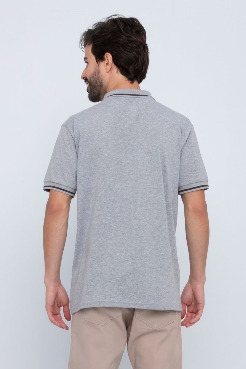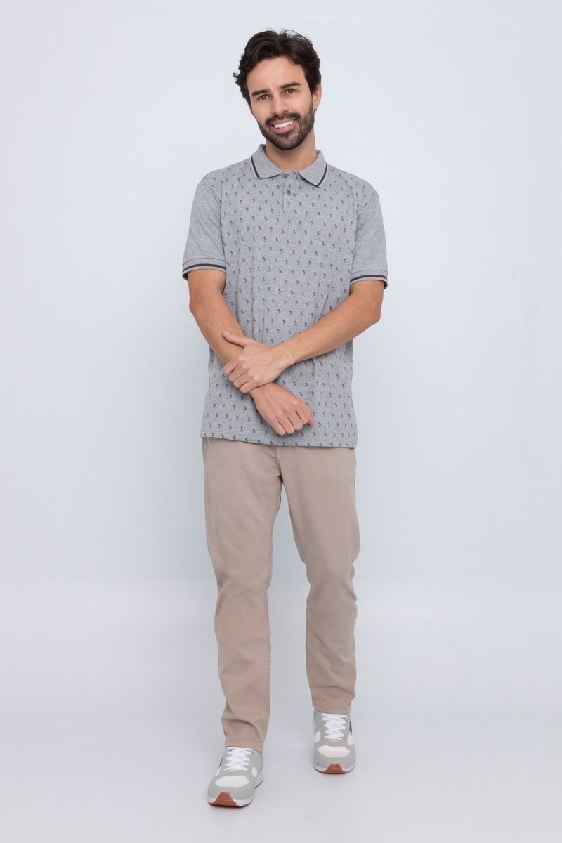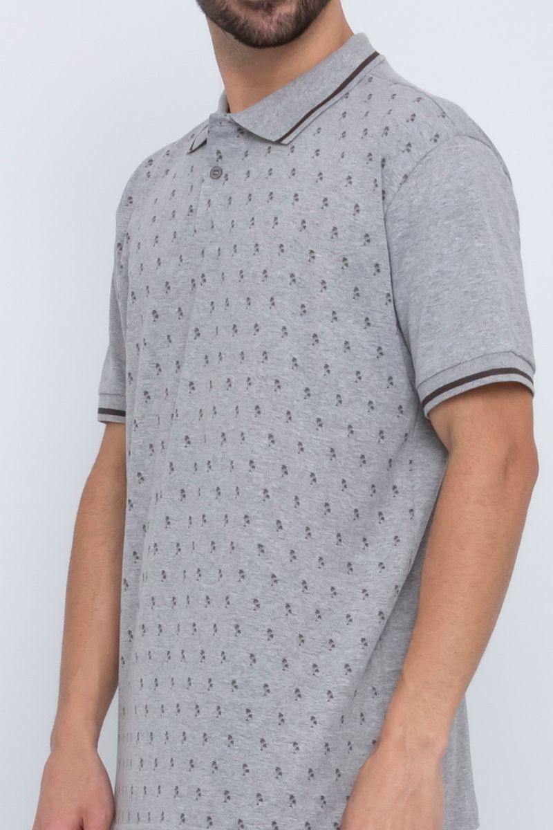 VestuárioOfertasMasculinoNovidadesPolosMasculinoCamisa Polo Masculina em Malha Estampada Mescla