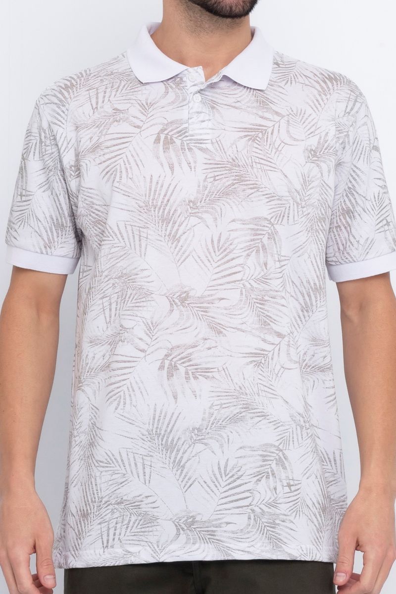 VestuárioMasculinoNovidadesPolosPolo Masculina em Piquet com Estampa Folhas Branca