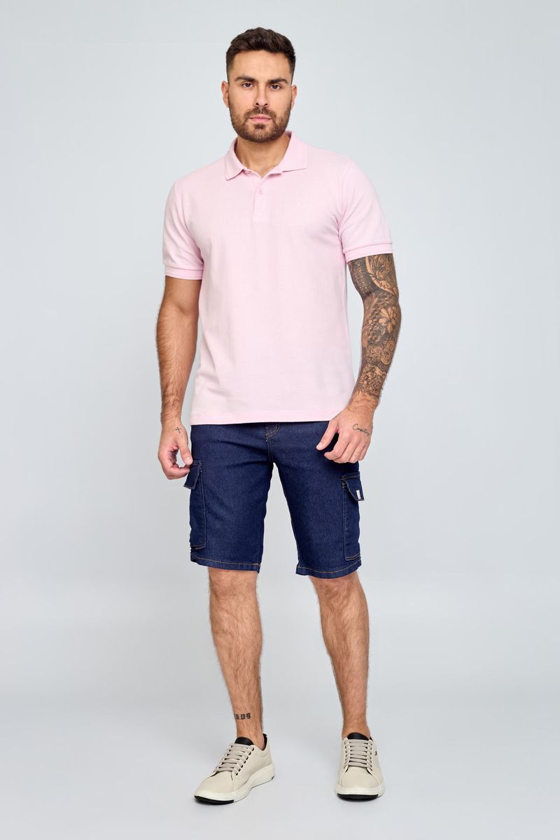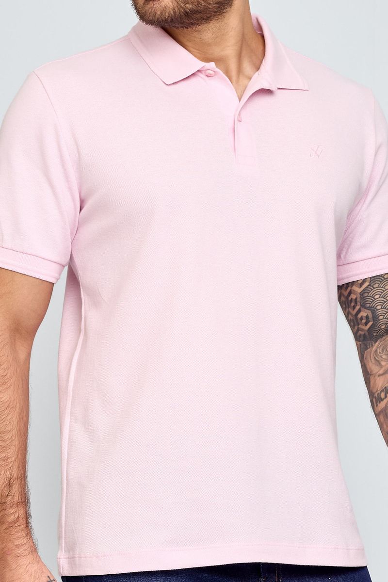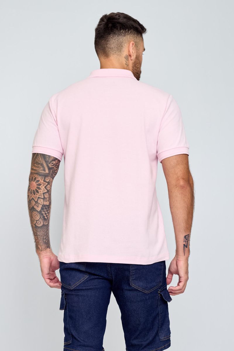Polo Masculina com Bordado Rosa