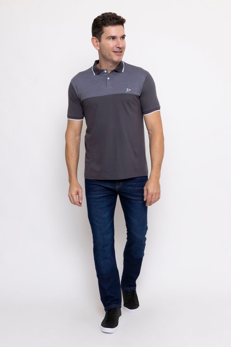 Polo Masculina Casual Mescla e Chumbo