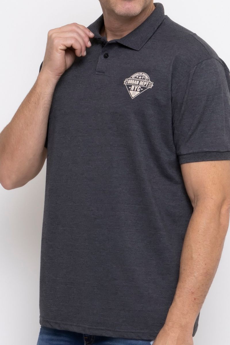 VestuárioMasculinoNovidadesPolosCamisa Polo Masculina em Piquet Estampada Chumbo