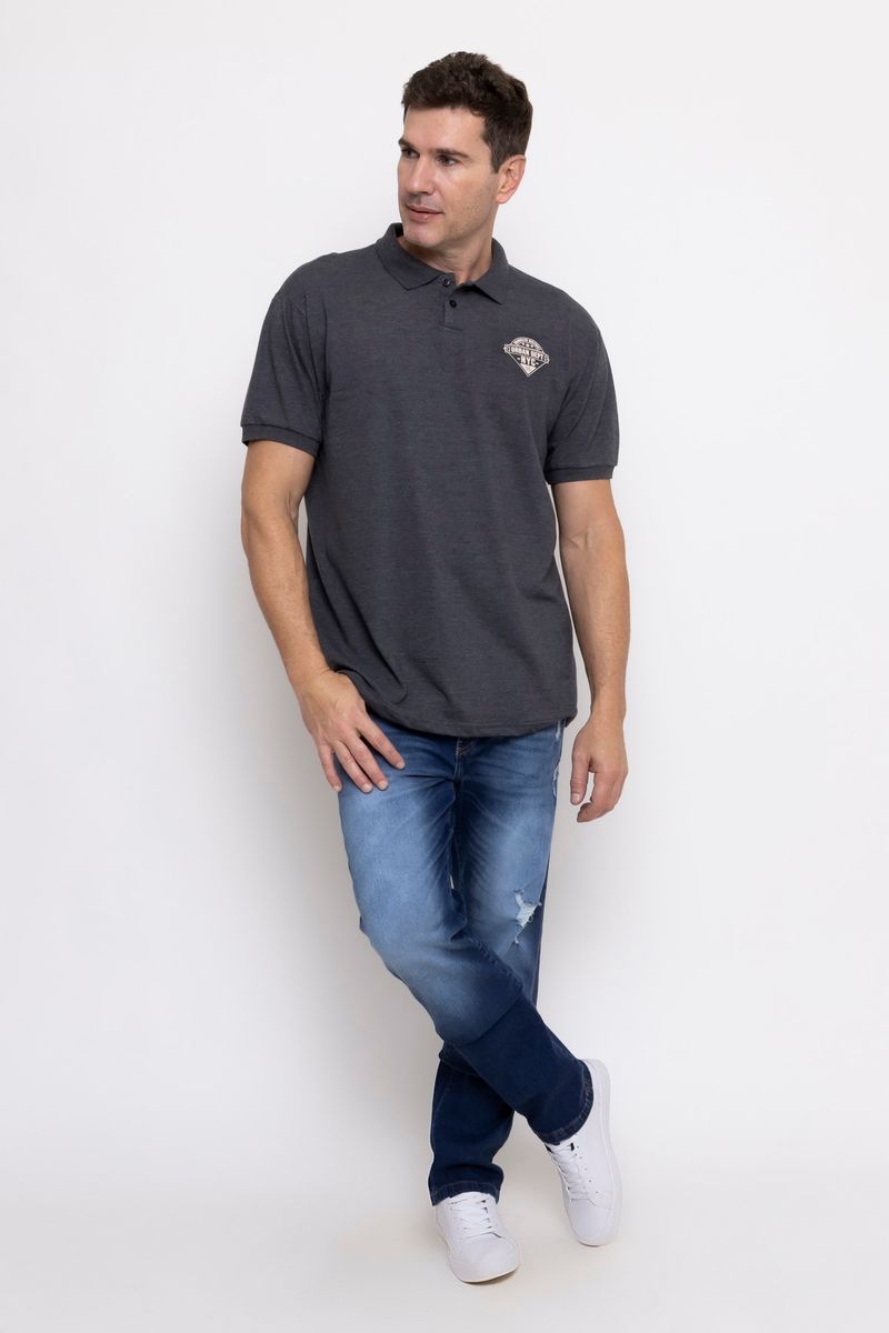 Camisa Polo Masculina em Piquet Estampada Chumbo
