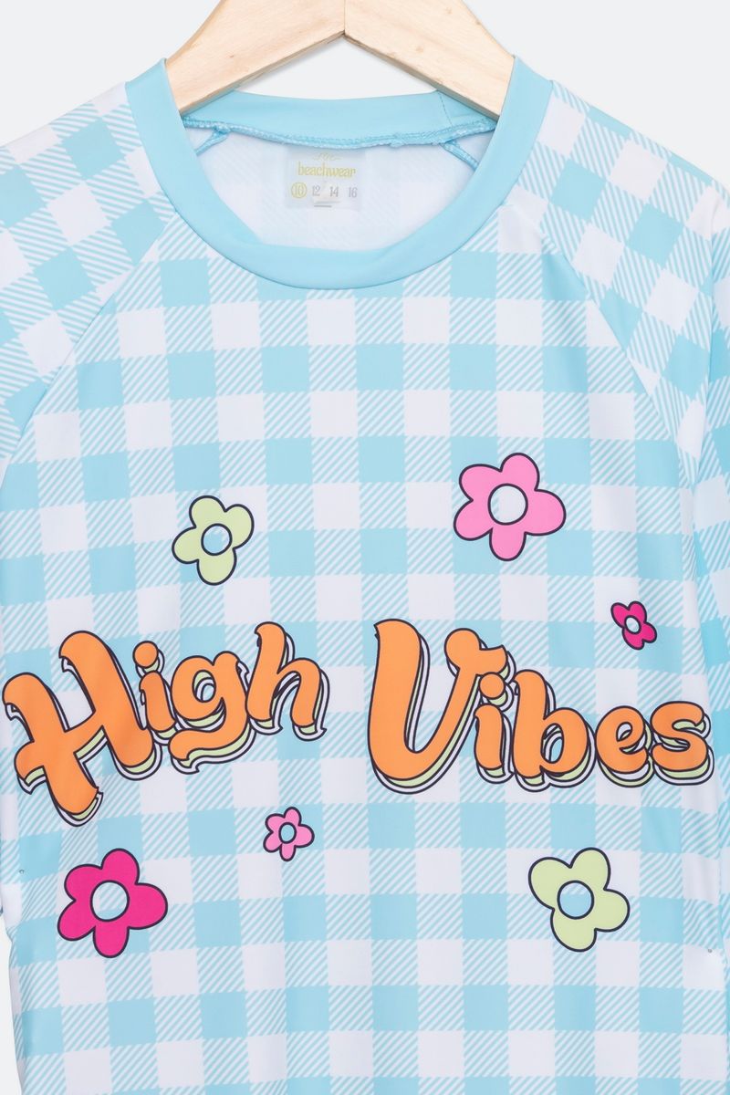 Rashguard Juvenil Menina Tam 10 a 16 Praia Xadrez Estampado