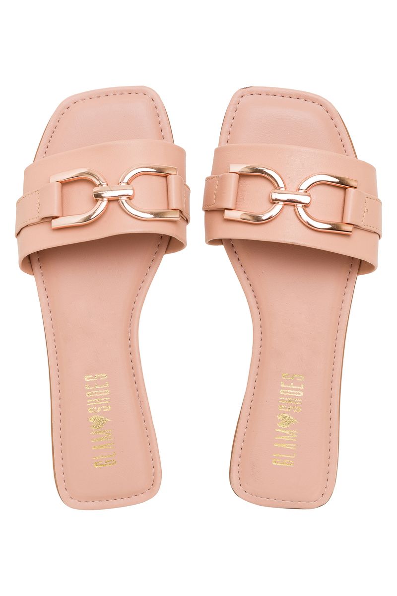 Rasteira feminina Gaspea com enfeite rosado, charmosa e confortável.
