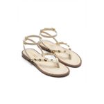 Detalhes: Tachas douradas, fivelas ajustáveis, palmilha "Glam Sole"