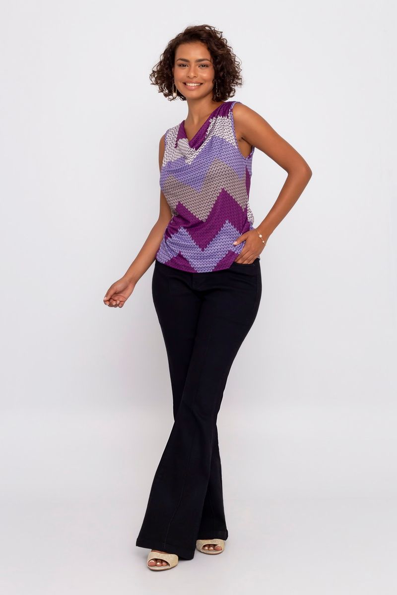 VestuárioFemininoNovidadesBlusas e CamisetasRegata Feminina City com Estampa Chevron Violeta