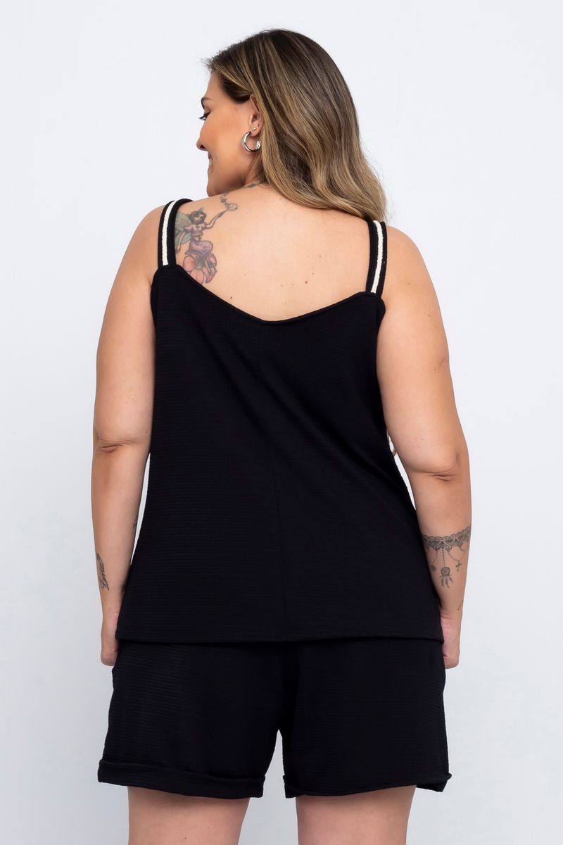 Regata feminina casual. A peça possui decote redondo e alças largas. Modelo plus size.