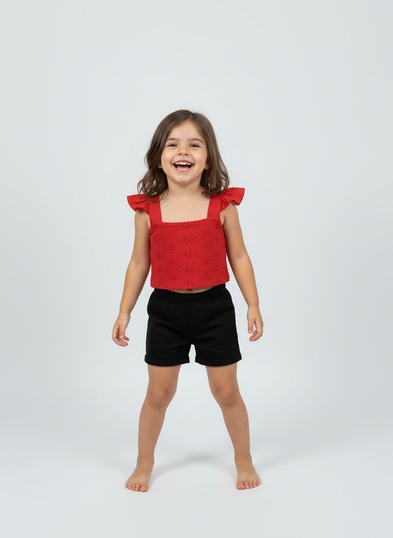 A Regata Infantil Laise Vermelha da Caedu oferece um visual encantador e confortável para as meninas. Com seu tecido laise vibrante e detalhes de babados nas alças, esta peça de roupa infantil é perfeita para criar looks cheios de estilo e alegria. Um toque de moda para o dia a dia.