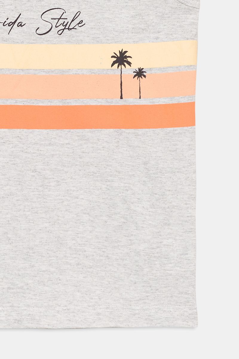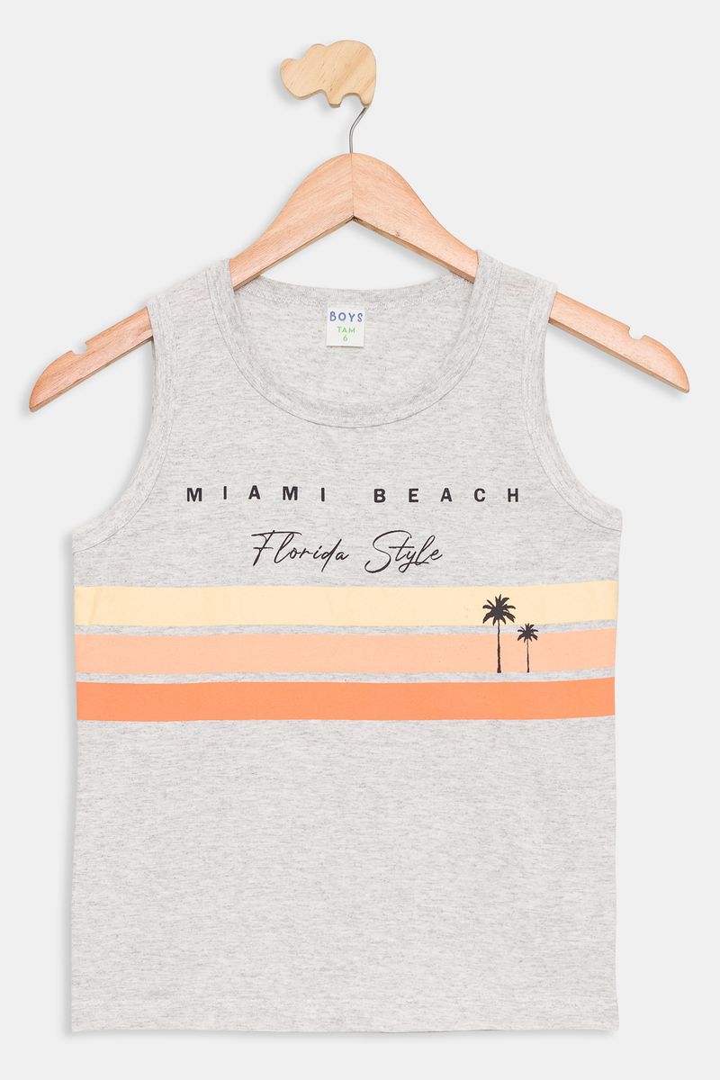 Regata infantil mescla com tema tropical, leve e perfeita para os dias quentes.