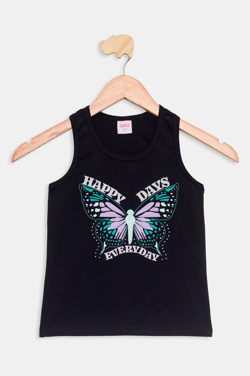 A Regata Juvenil Borboleta Preta Caedu é a escolha ideal para um visual fresquinho e cheio de personalidade. Com estampa de borboleta vibrante, alças largas e gola redonda, oferece conforto e estilo para as jovens que amam moda. Uma roupa perfeita para expressar sua alegria!