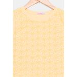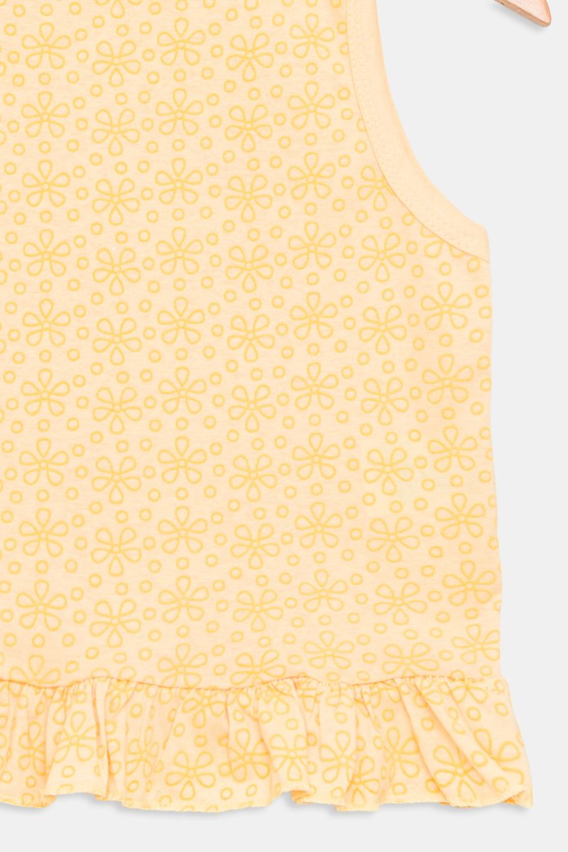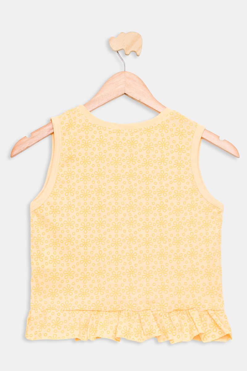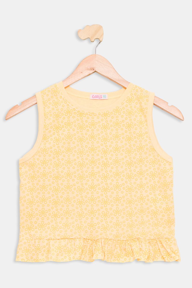 Desperte o charme e a alegria com a Regata Juvenil de Lasie Amarela Caedu. Confeccionada em 100% algodão, esta peça em meia malha oferece conforto inigualável. Seu acabamento em laise e delicada estampa floral garantem um visual elegante e versátil para diversas ocasiões, sendo uma excelente opção de roupa juvenil com preço bom.