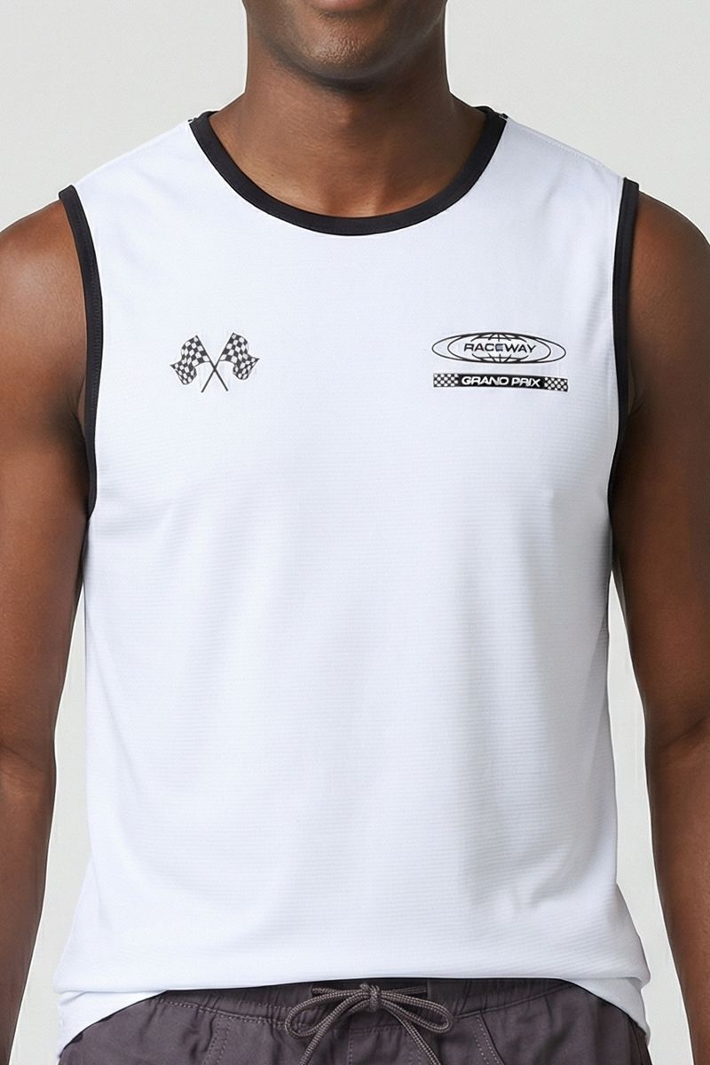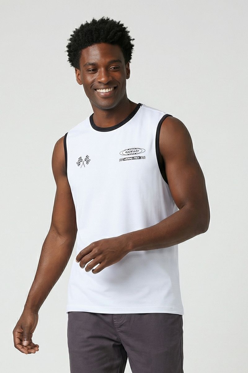 Eleve seu estilo com a Regata Masculina Street Grand Prix Caedu. Confeccionada em 100% algodão, oferece conforto e toque macio. Sua estampa exclusiva Grand Prix e detalhes em preto criam um visual autêntico e moderno, ideal para quem busca moda e personalidade em suas roupas.