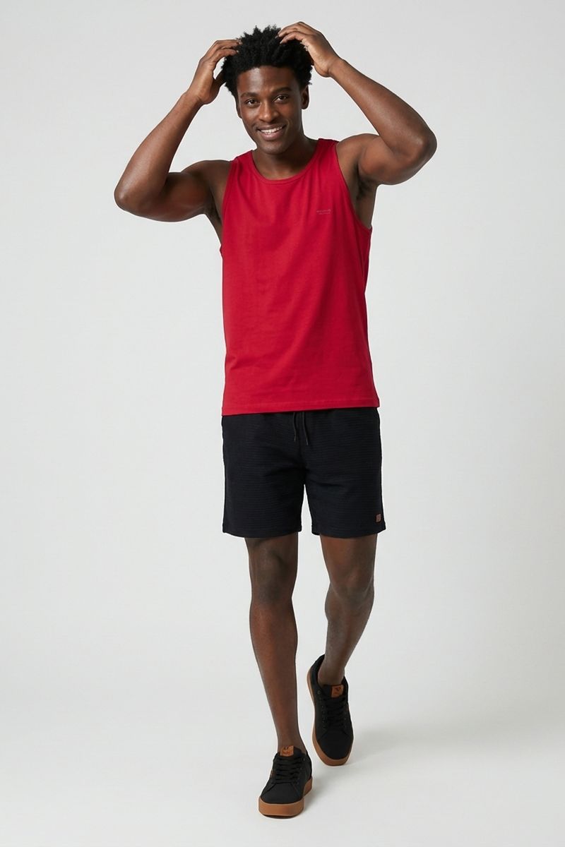 Combine sua regata vermelha com bermudas jeans ou de sarja para um visual casual e despojado, ideal para o dia a dia. Para um toque mais urbano, aposte em calças cargo e tênis modernos. Nos dias mais frescos, adicione uma jaqueta leve ou camisa de manga comprida aberta para complementar o look com personalidade e estilo. Uma peça chave para diversas combinações de moda masculina.