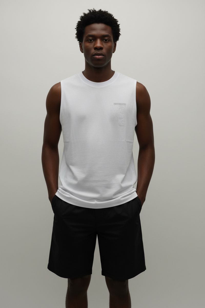 Combine sua Regata Masculina Branca Estilo Street Caedu com uma bermuda preta para um visual urbano e descontraído. Para um toque mais casual, opte por calças jeans claras e tênis brancos. Adicione um boné ou óculos de sol para complementar o look com personalidade e muito estilo.