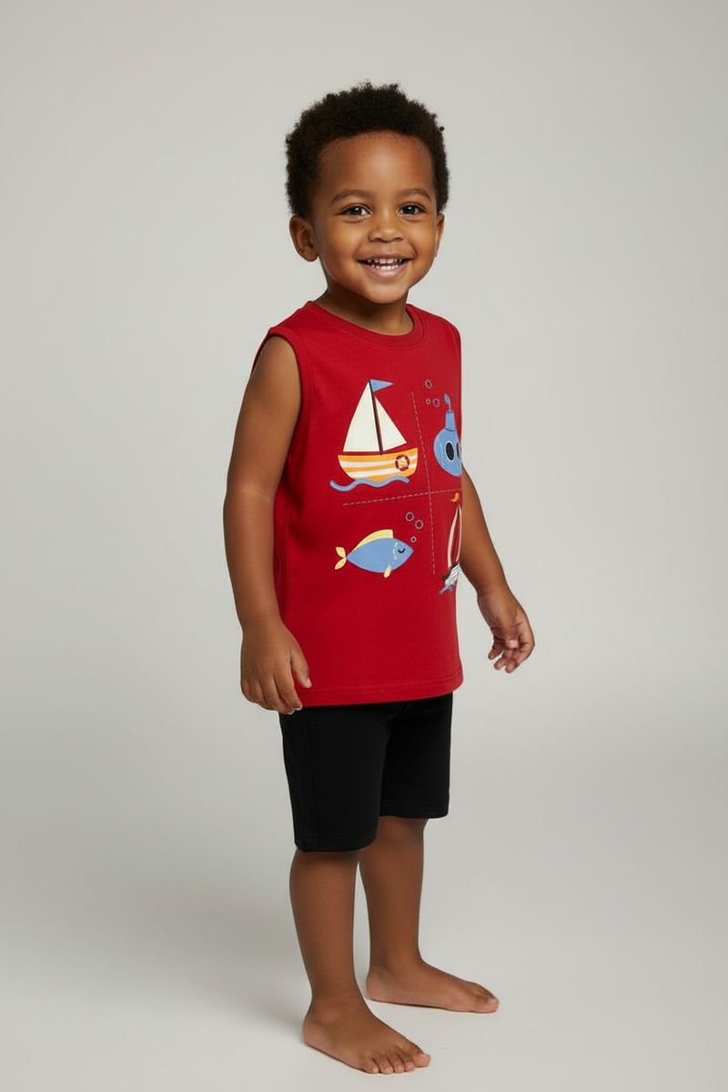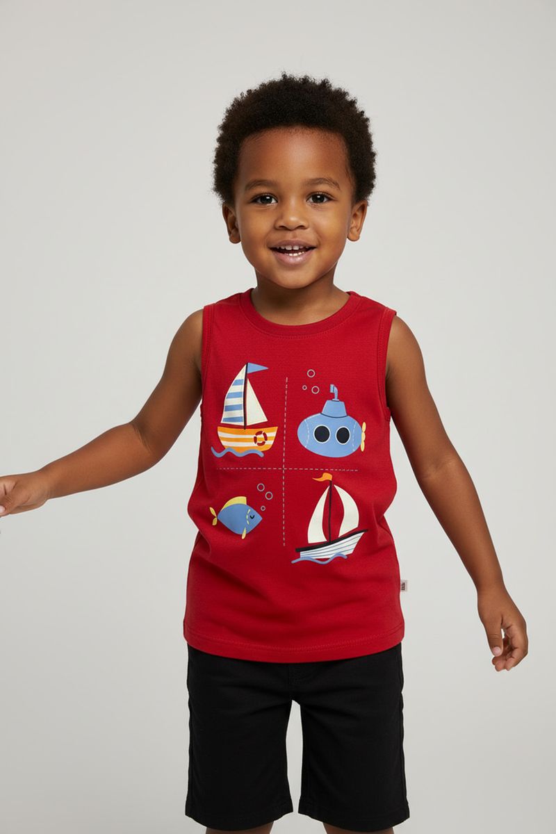 Esta regata infantil é ideal para momentos de lazer, passeios no parque, idas à praia ou piscina, e para um dia divertido em casa. Perfeita para brincadeiras ao ar livre, garantindo liberdade de movimento e muito estilo para seu pequeno.