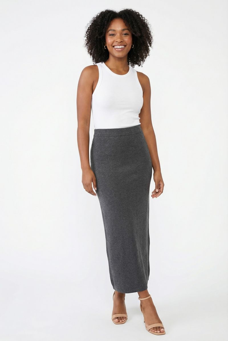 Saia fem city fcii013 midi trico cinza cinza escuro