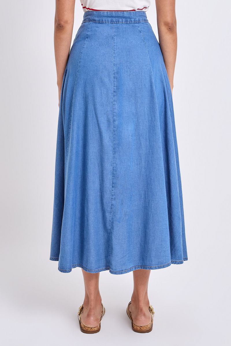 Perfeita para diversas ocasiões, a Saia Midi Fluida Jeans Tencel Azul Claro Caedu é ideal para passeios descontraídos, encontros com amigos, eventos casuais ou até mesmo para compor um look elegante no dia a dia. Adapta-se a momentos que pedem conforto e estilo.