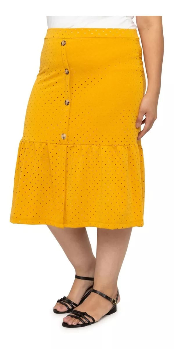 VestuárioOfertasFemininoNovidadesSaiasFemininoSaia Midi Laise Amarela Feita Pra Mim