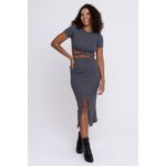 Saia Feminino Cinza Escuro com Fenda em Ribana