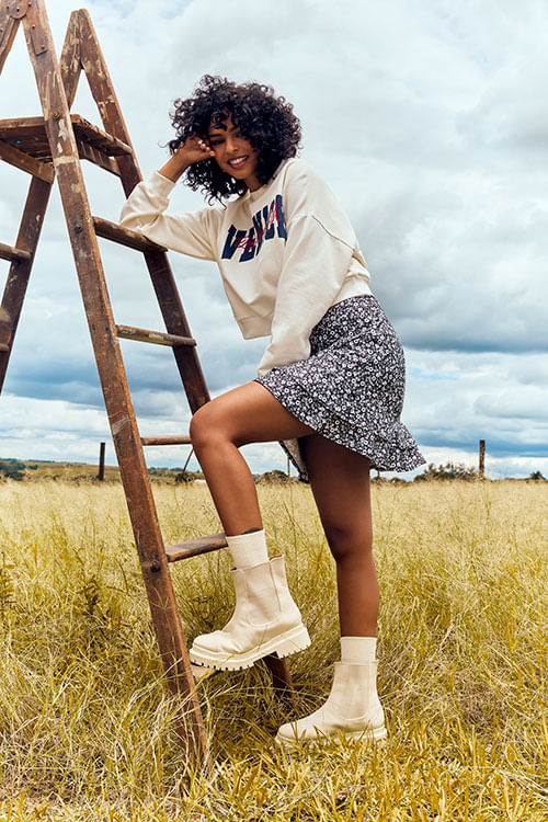 Saia com estampa Liberty e babados na barra. Ideal para todos os momentos, a peça é leve e oferece muito movimento, proporcionando leveza e fluidez.