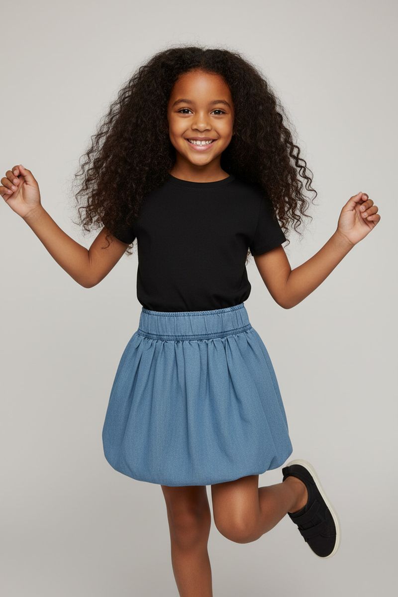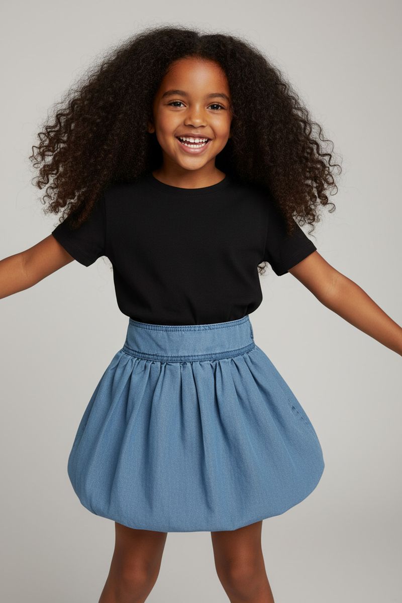 Perfeita para diversas ocasiões, a Saia Balonê Jeans Infantil é ideal para passeios no parque, festinhas de aniversário, encontros com amigos ou um dia divertido em família. Uma peça versátil para o dia a dia das pequenas, garantindo charme e conforto.