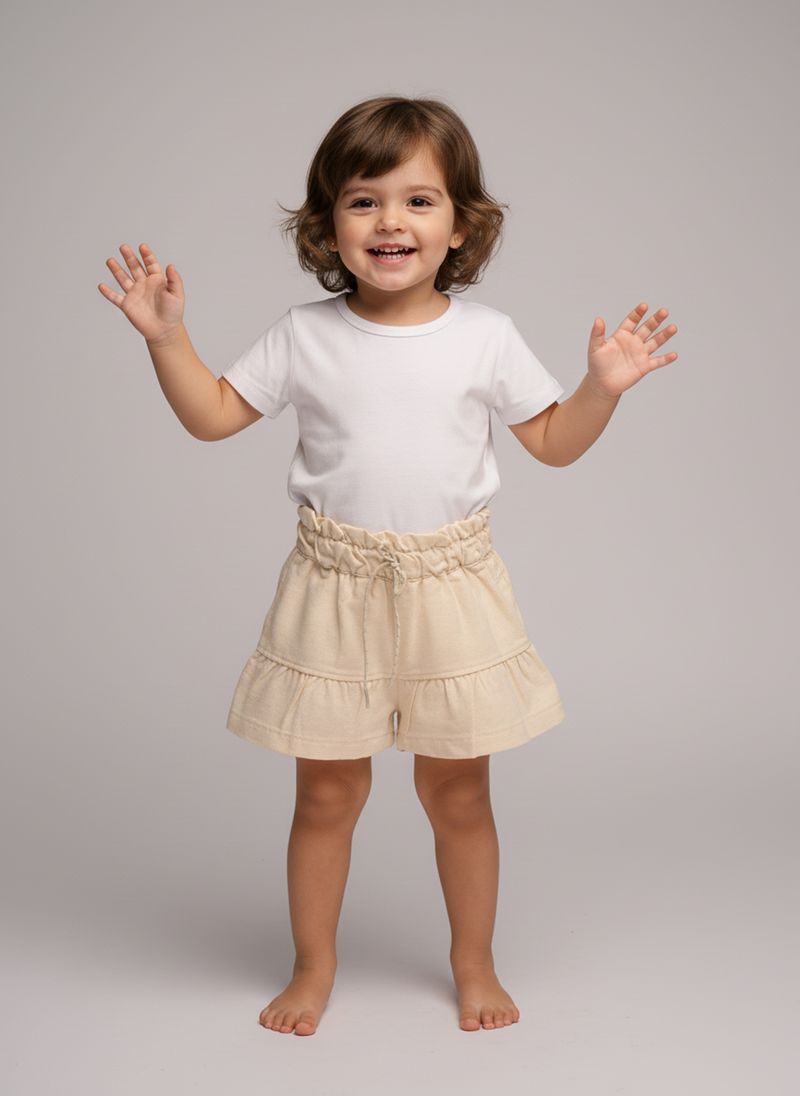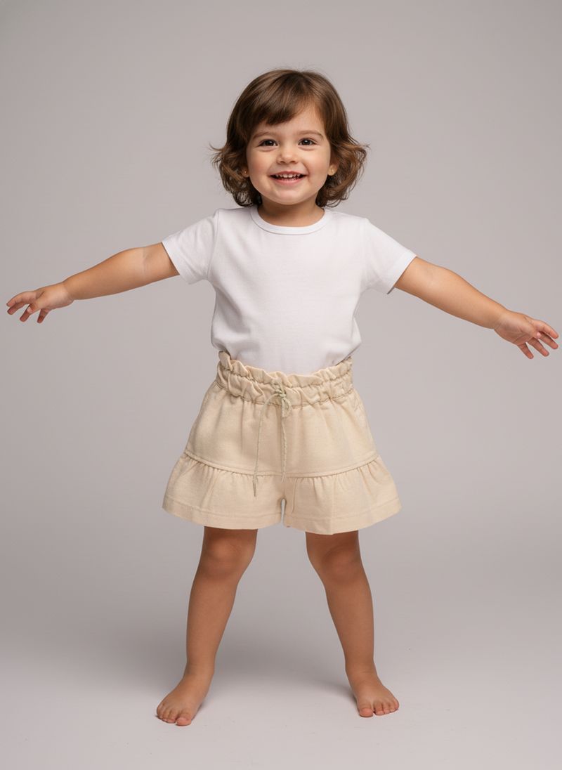 A Saia Curta Sarja Off White Infantil Caedu é perfeita para looks estilosos e confortáveis. Ideal para meninas, possui babados delicados e ajuste com cordão no cós elástico. Feita em sarja leve, garante liberdade de movimento e um toque de charme. Combine com diversas peças da moda infantil para um visual versátil e elegante. Palavras-chave: saia infantil, sarja off white, moda menina.