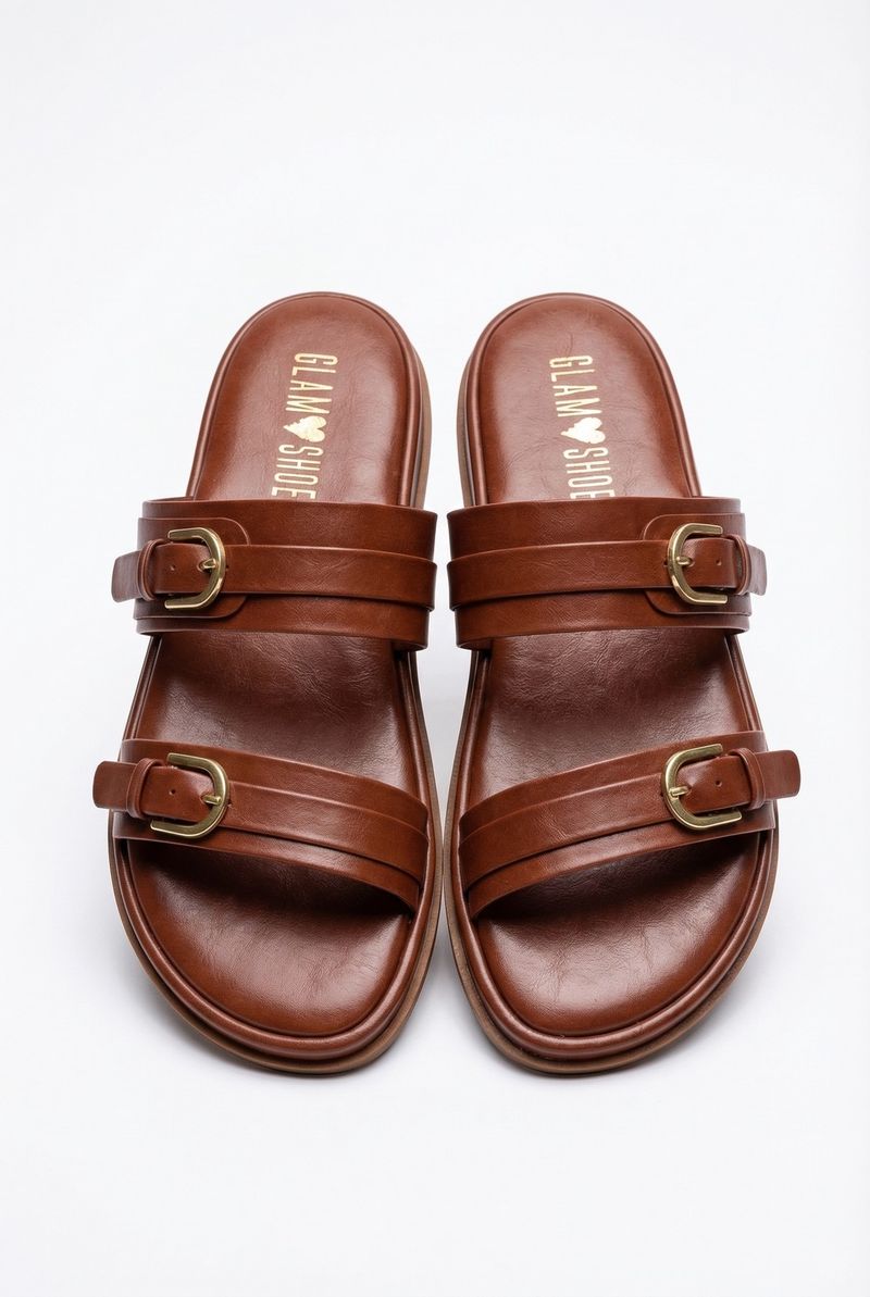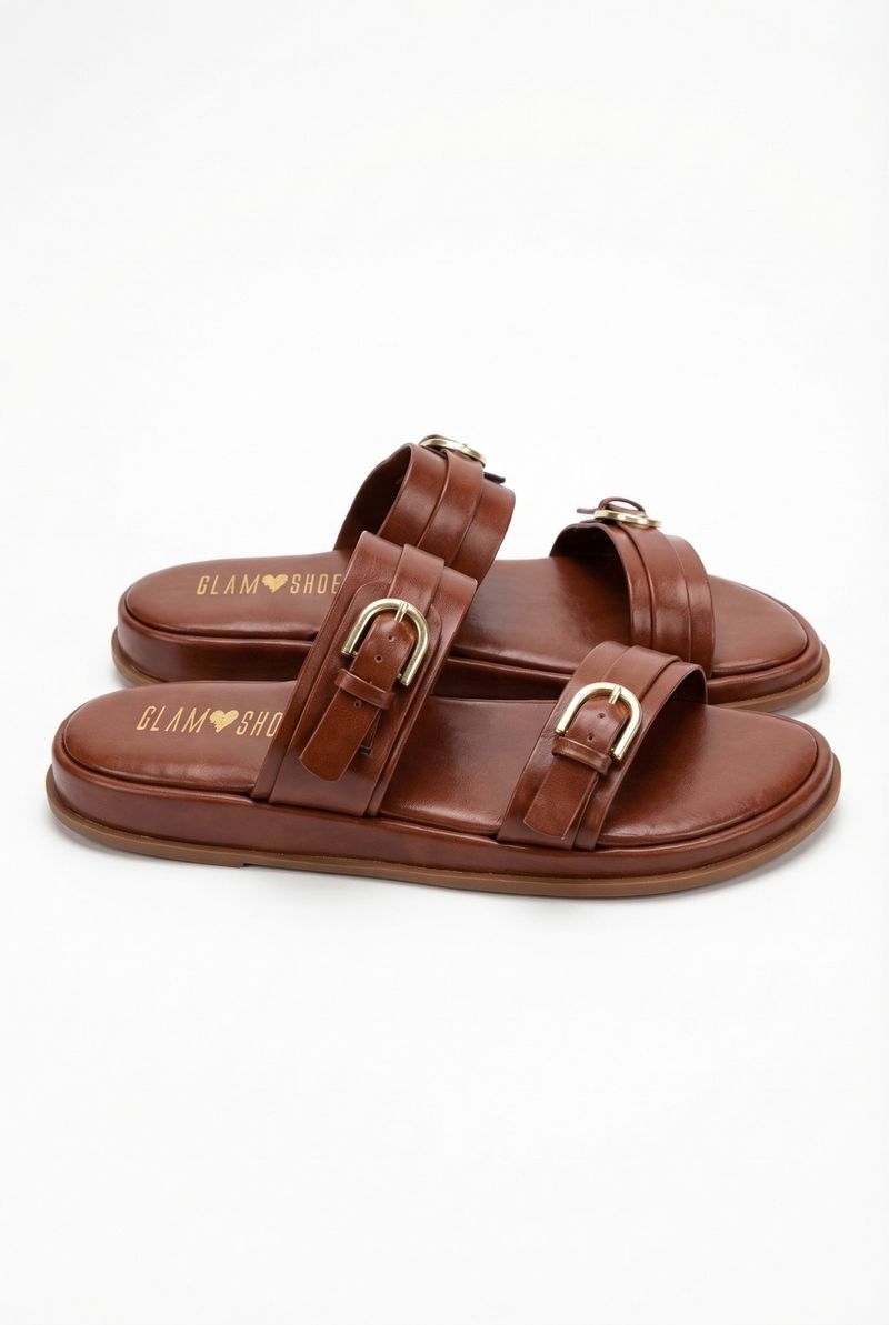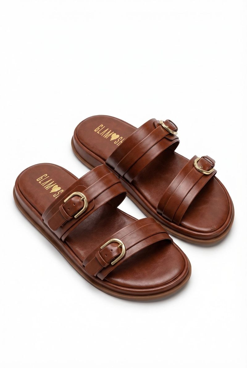 A Sandália Casual Glam SH Caramelo Caedu oferece estilo e conforto para seus pés. Com duas tiras largas e fivelas douradas ajustáveis, ela é perfeita para quem busca um visual moderno e versátil. Sinta a leveza e a qualidade da moda Caedu.