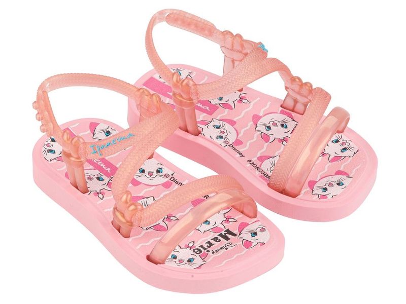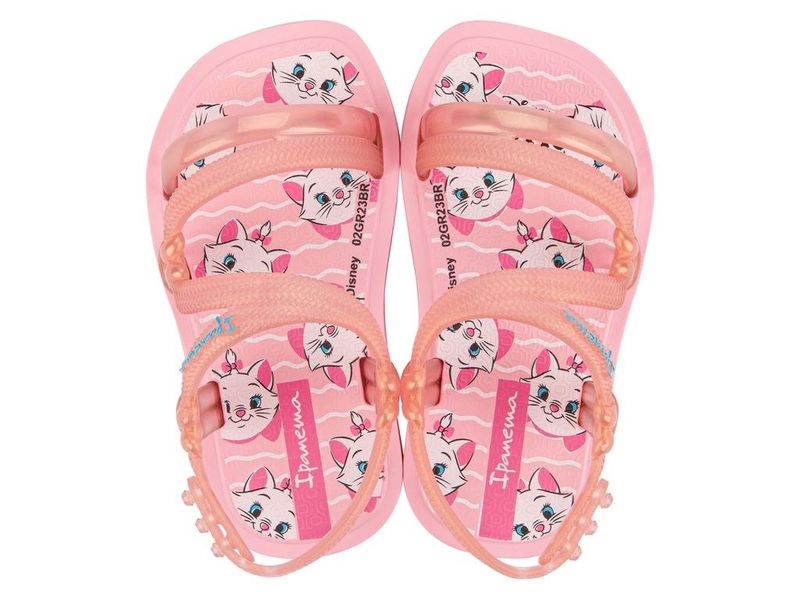 Chinelo infantil para bebês, confeccionado em PVC com fechamento por tira de elástico. Possui palmilha com textura, estampa da gatinha Marie, solado flexível, emborrachado com frisos antiderrapantes para garantir maior segurança e conforto ao caminhar. Ma