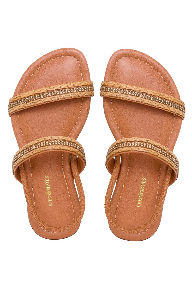 A Sandália Kids Trança + Brilho Caramelo Caedu é a escolha perfeita para as pequenas que amam moda e estilo. Com detalhes de trança e brilho, oferece conforto e um toque especial para os dias de sol. Garanta já o melhor preço e um look encantador!
