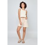 Short feminino casual em sarja com cinto bege, versátil e prático, ideal para um visual casual e arrumado.