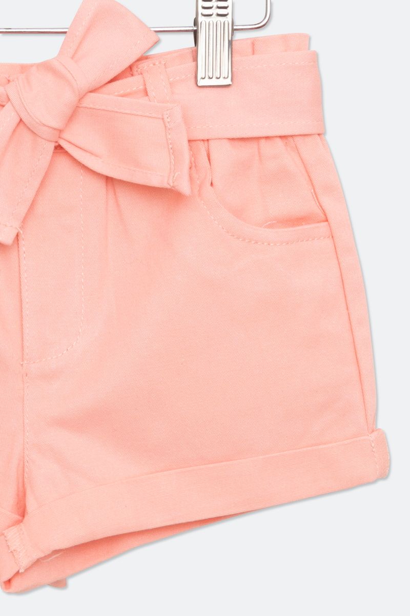 Shorts Infantil em Twill com Cinto Coral Tam 4 a 8