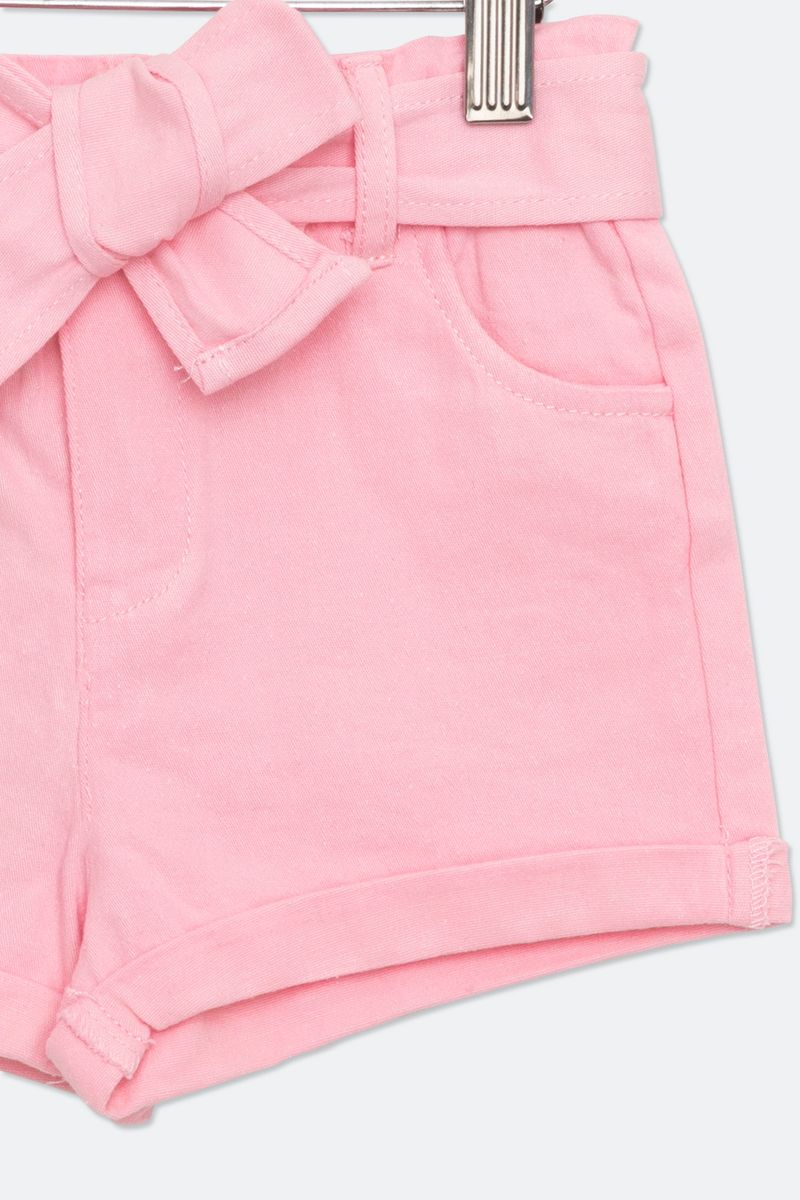 Shorts Infantil em Twill com Cinto Rosa Claro Tam 4 a 8