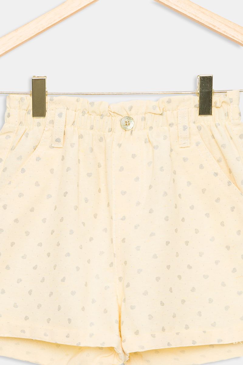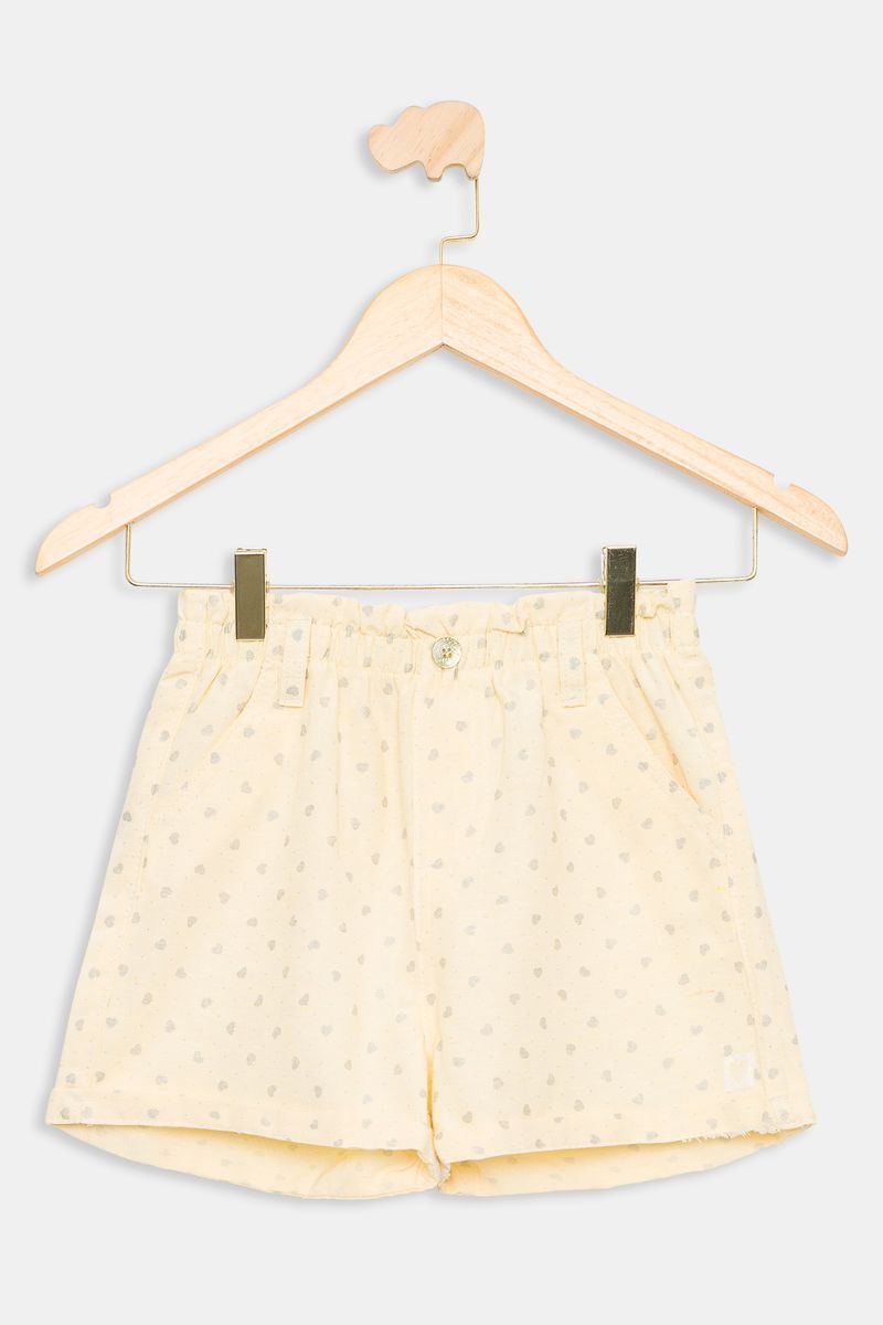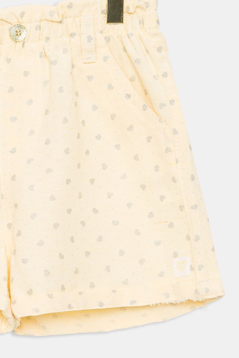 O Short Infantil Clochard Estampado Amarelo Caedu é a escolha perfeita para um visual charmoso e confortável. Com design clochard, estampa de corações e cor amarela vibrante em sarja de algodão, oferece liberdade para brincar com muito estilo. Uma peça essencial para a moda infantil.