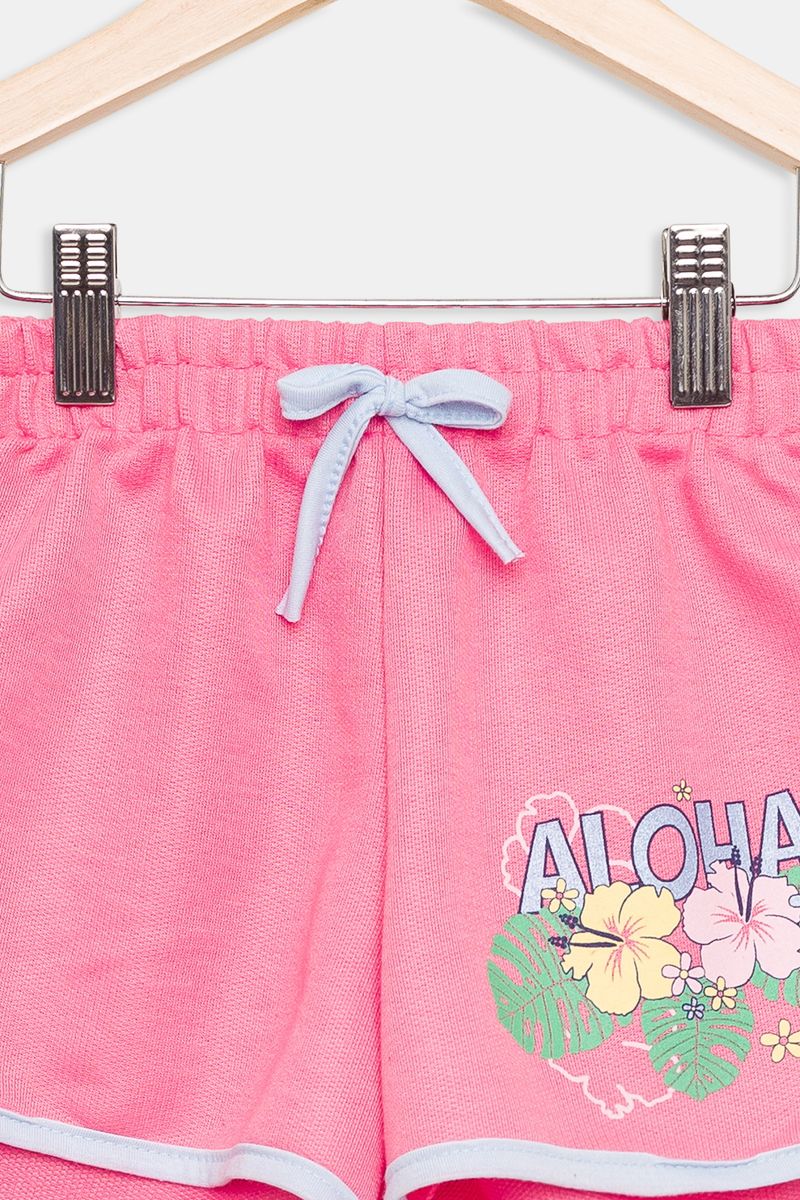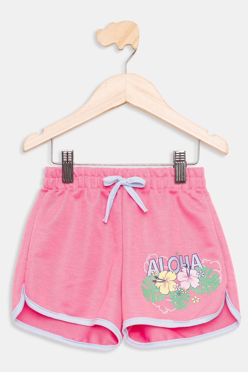 O Short Infantil Meninas Runner Rosa Caedu é ideal para as pequenas. Leve e respirável, oferece liberdade de movimento com modelagem esportiva. Estampa 'ALOHA' e cós elástico garantem conforto e estilo para brincadeiras. Uma peça essencial de moda infantil.