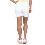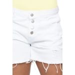 Shorts feminino de sarja branco com desfiado na barra e fecho de botões.
