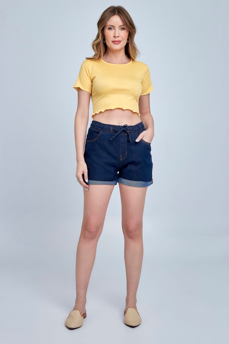 Combine seu shorts com um top vibrante para um visual descontraído, como um crop top amarelo, ou uma blusa leve para um toque mais casual. Nos pés, aposte em tênis brancos para conforto ou sandálias rasteirinhas para um charme extra. Adicione acessórios como óculos de sol e uma bolsa transversal para finalizar.