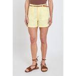 Combine o shorts amarelo com blusas neutras como branco ou marrom para um visual equilibrado. Para um toque despojado, use com tênis e uma camiseta estampada. Sandálias e um top cropped criam um look fresco e moderno, perfeito para diversas ocasiões.
