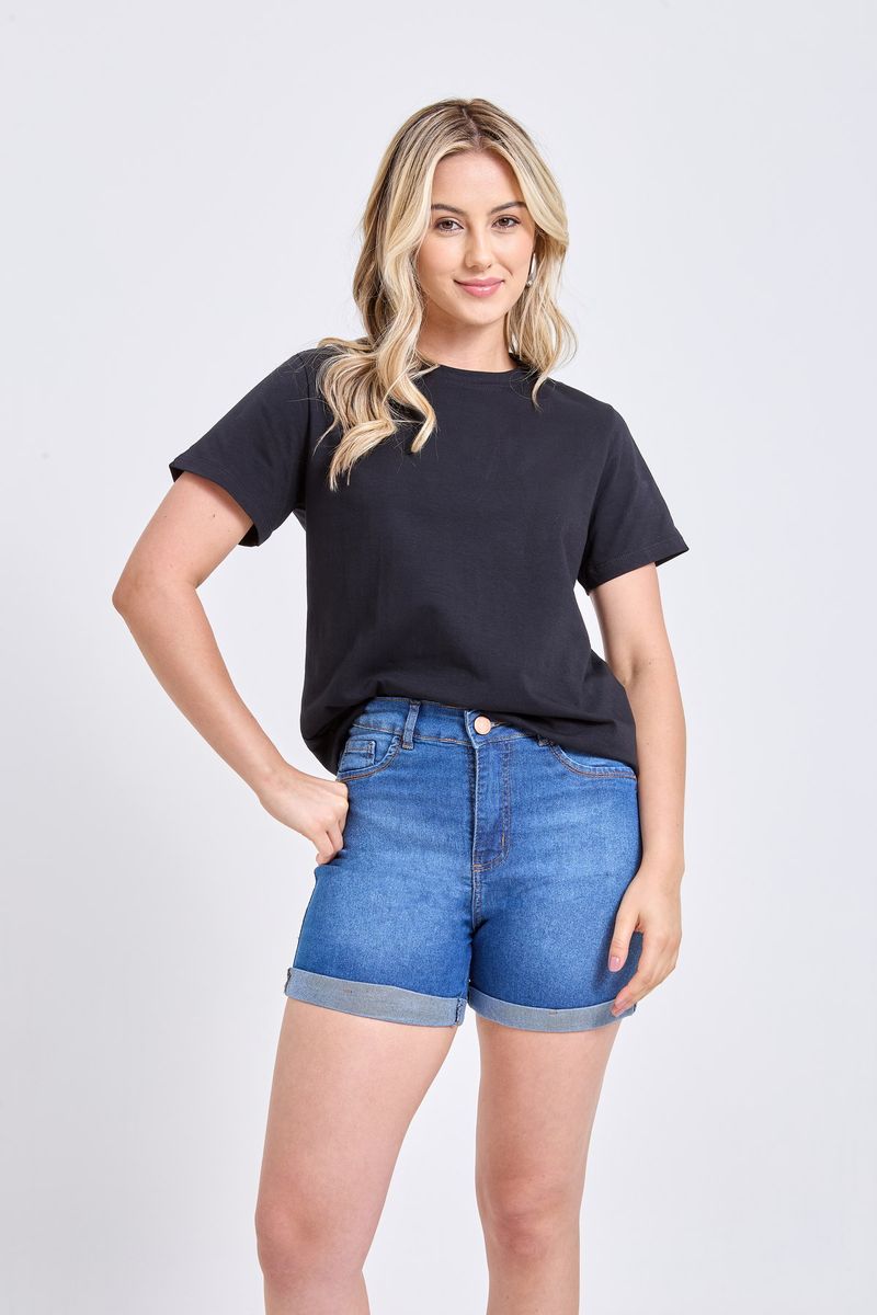 Sinta a liberdade e o estilo com o Shorts Jeans Feminino Azul Médio Conforto Caedu. Perfeito para quem busca roupas versáteis, este shorts em denim azul médio apresenta barra dobrada e bolsos frontais, ideal para compor looks modernos e cheios de personalidade. Uma peça essencial da moda Caedu para seu guarda-roupa.