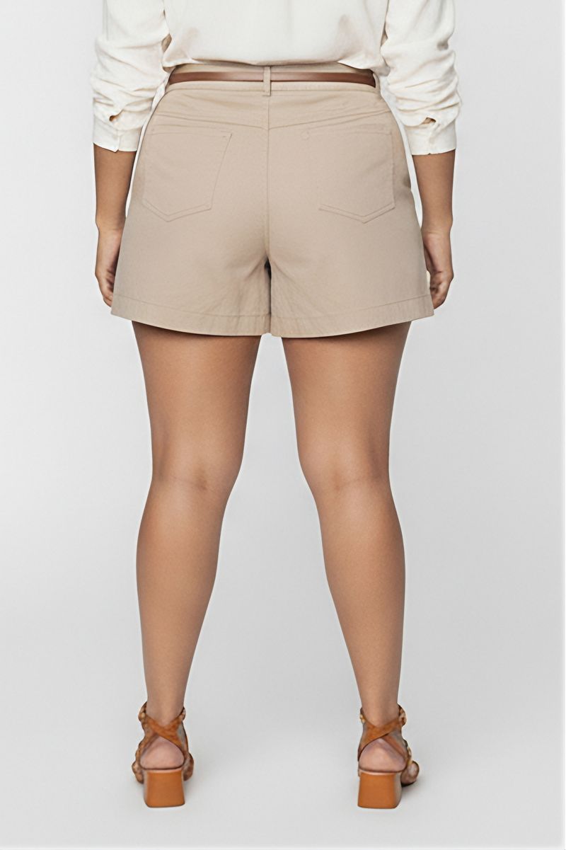 O Shorts Chino Bege Caedu une estilo e conforto. Em sarja 100% algodão, tem toque suave e caimento perfeito. Com cintura alta e cinto marrom, é a peça ideal para um visual moderno e versátil.