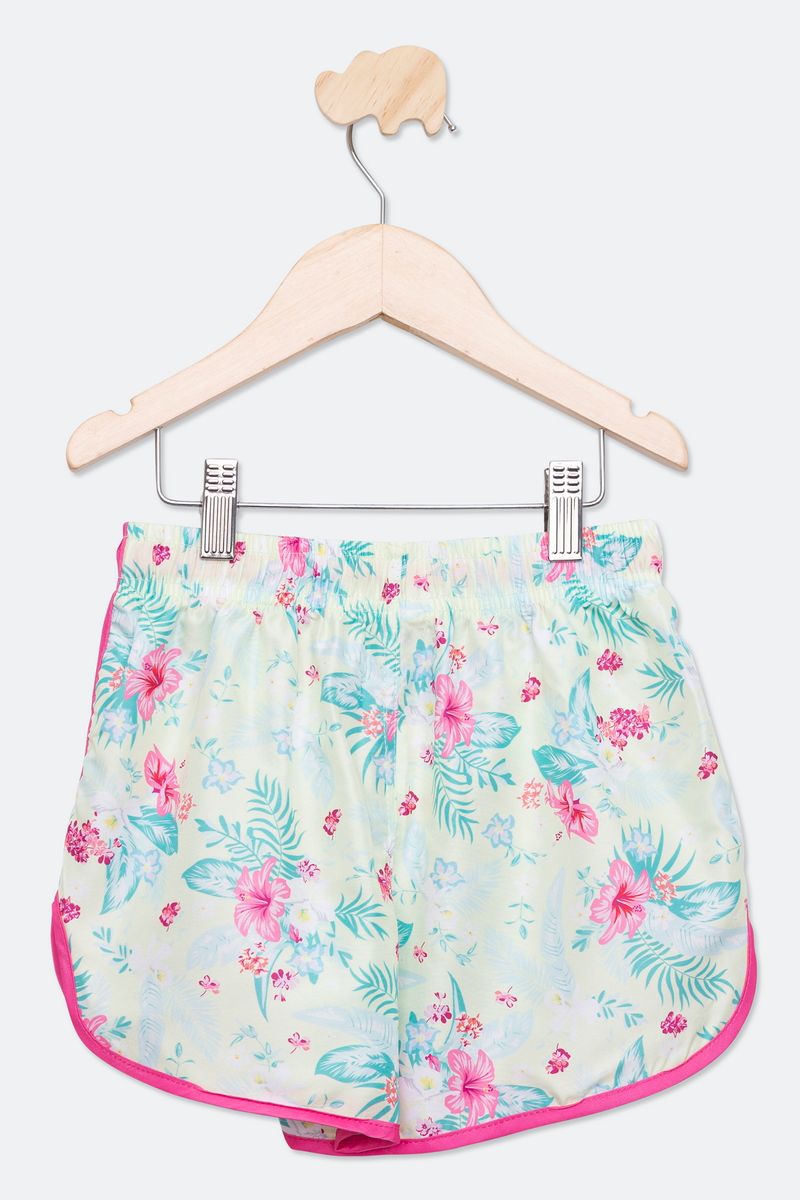 VestuárioInfantilNovidadesBermudas e ShortsShorts Juvenil com Estampa Floral Verde e Rosa Tam 10 a 16