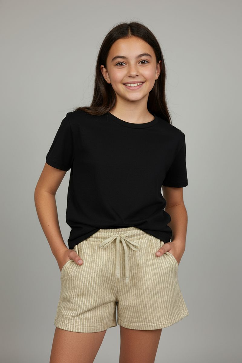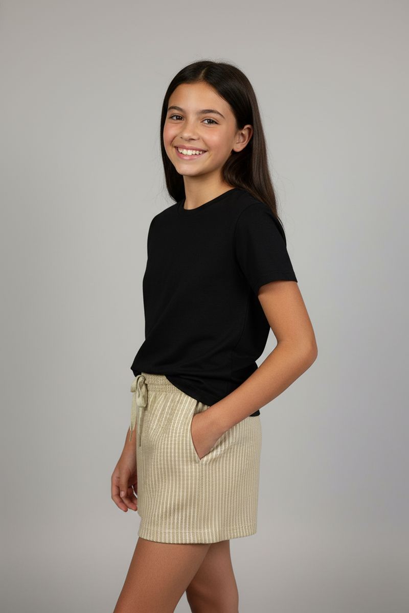 Shorts Infantil Ribana Dourado com Lurex e Cordão Caedu