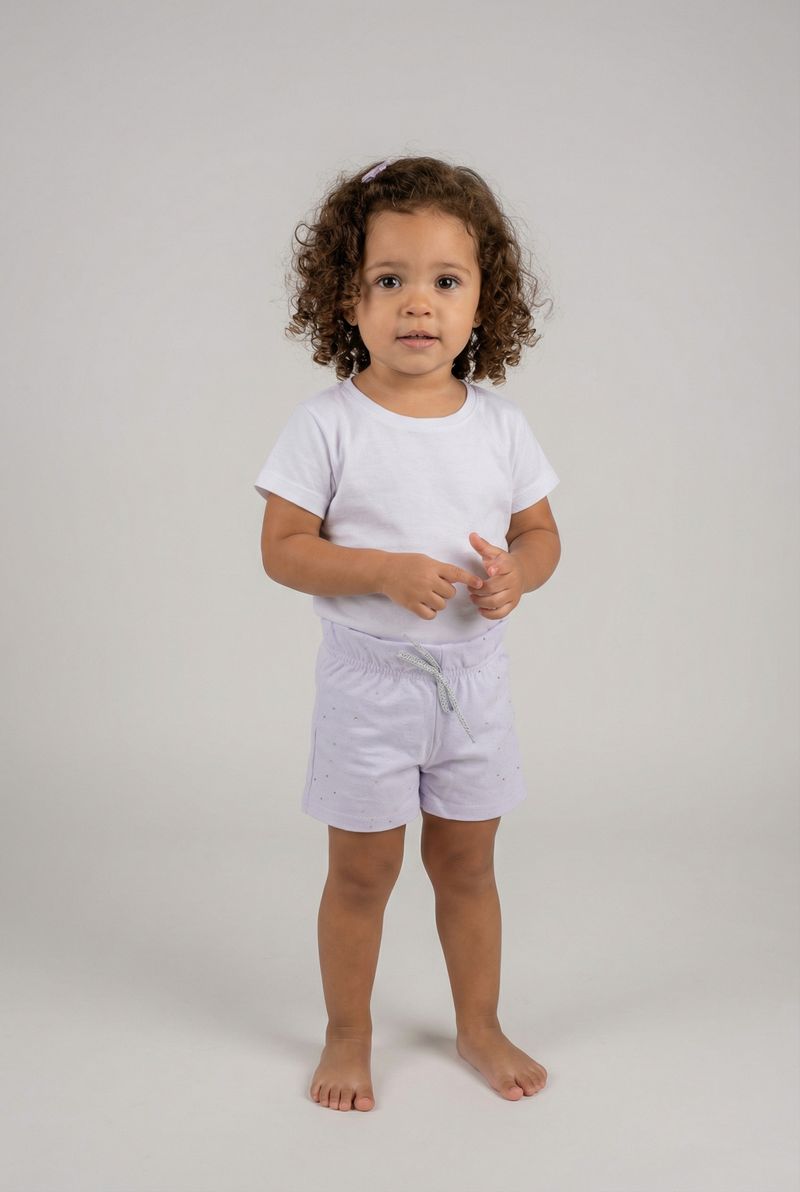 O Shorts Infantil Caedu Branco de Malha com Glitter oferece conforto e estilo para as meninas. Feito em 100% algodão, garante maciez e liberdade. O brilho delicado do glitter adiciona um toque mágico, perfeito para o dia a dia, tornando a roupa infantil ainda mais especial.