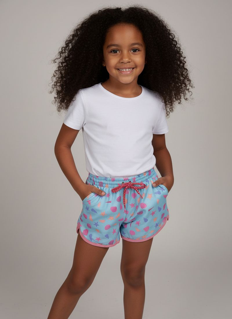 O Shorts Infantil Caedu é perfeito para as pequenas exploradoras! Confeccionado em TACTEL, oferece conforto e leveza. Sua estampa vibrante de conchas e estrelas do mar coloridas traz a alegria do oceano para o dia a dia, ideal para momentos de diversão e estilo. Uma peça essencial para a moda infantil.