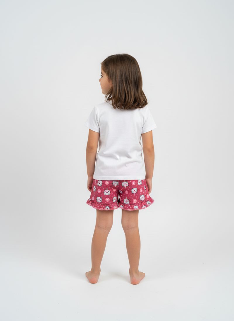 O Shorts Infantil Caedu é a escolha perfeita para um look divertido e confortável. Com sua estampa vibrante de gatinhos fofos e o charmoso babado, ele garante estilo e liberdade para brincar. A cintura elástica proporciona ajuste ideal para as pequenas.