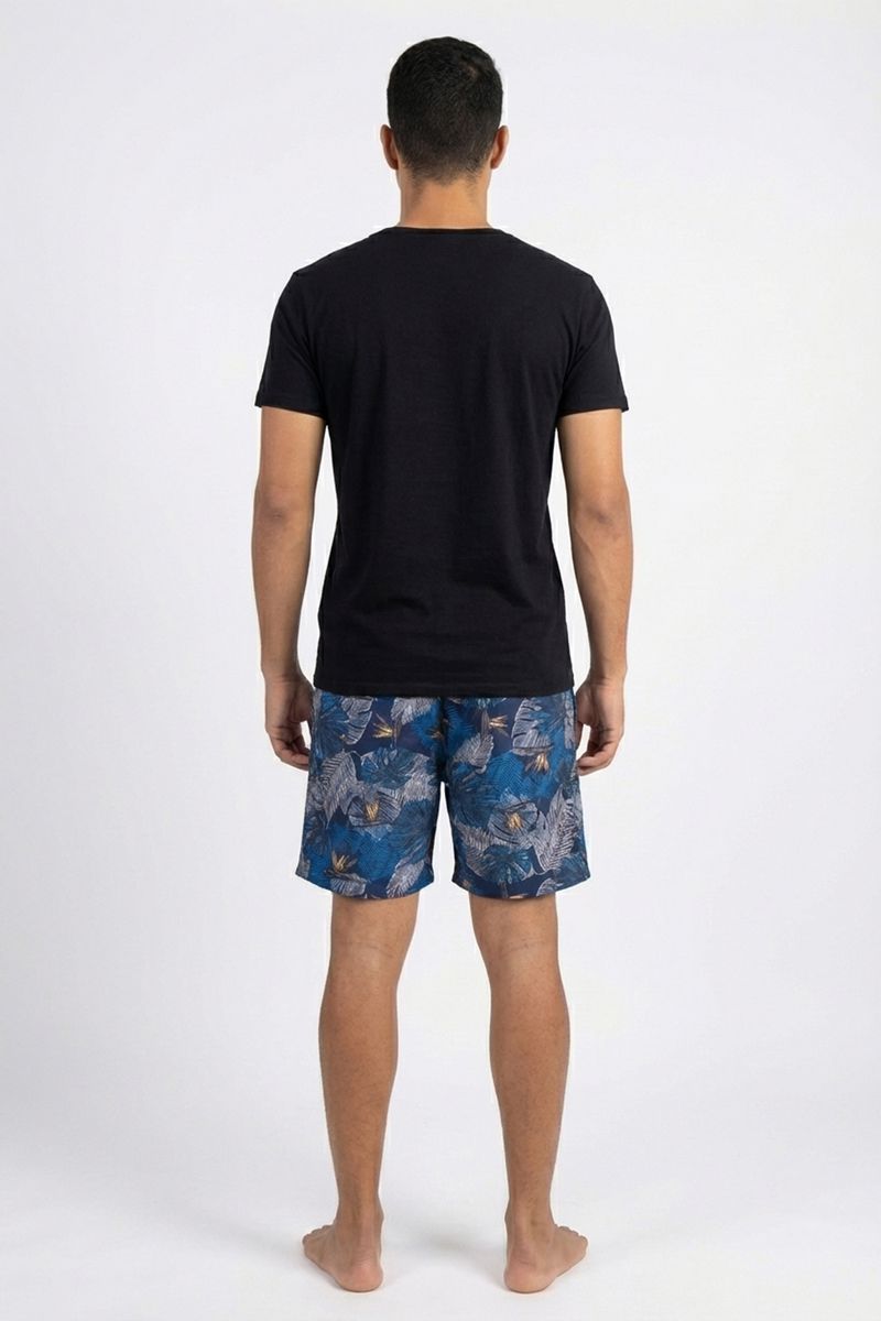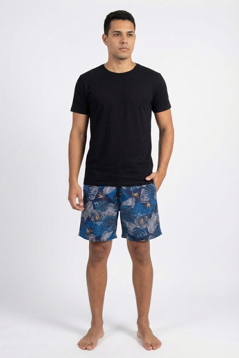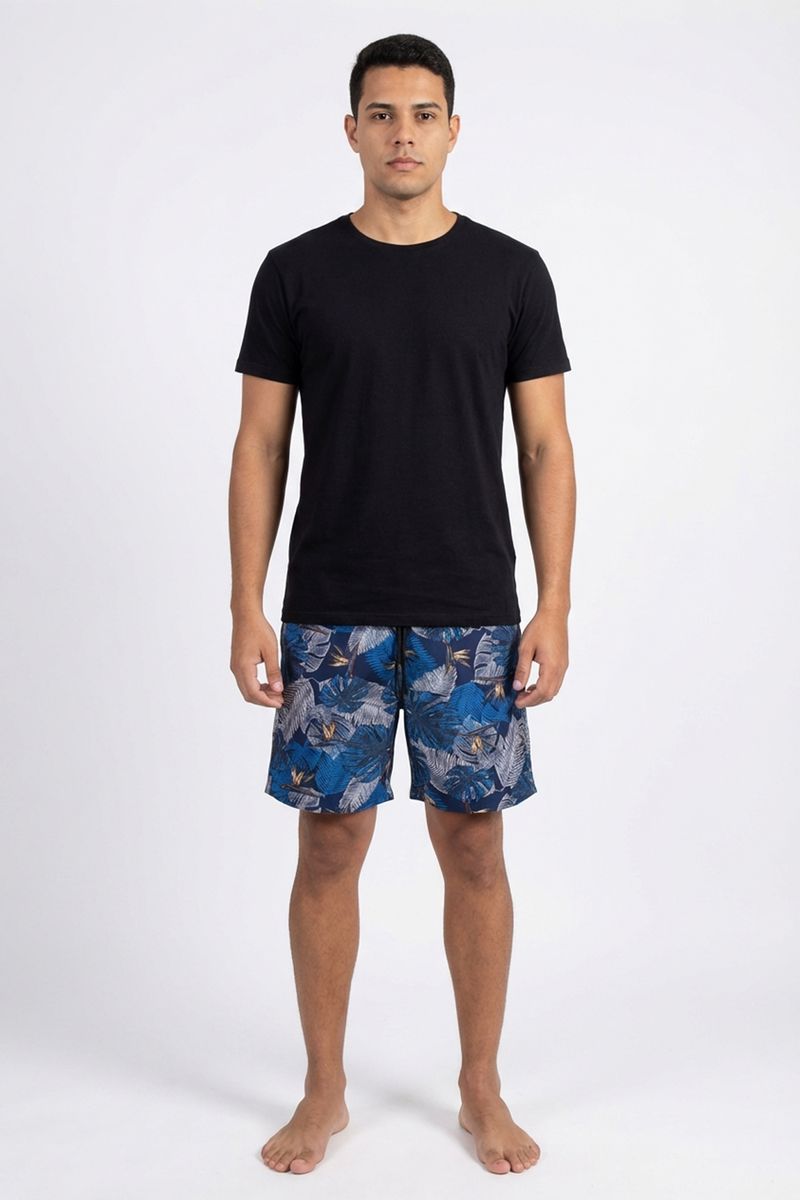 Produto: Bermuda masculina surf estampada folhagem tropical azul