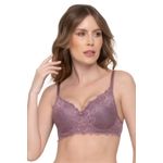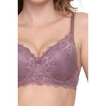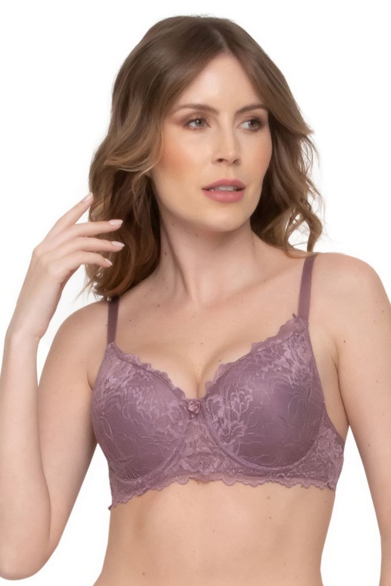 Sutiã feminino em renda com base. Possui bojo, laço no entremeio, alças ajustáveis e aro para melhor sustentação dos seios. Fechamento por colchetes nas costas.
