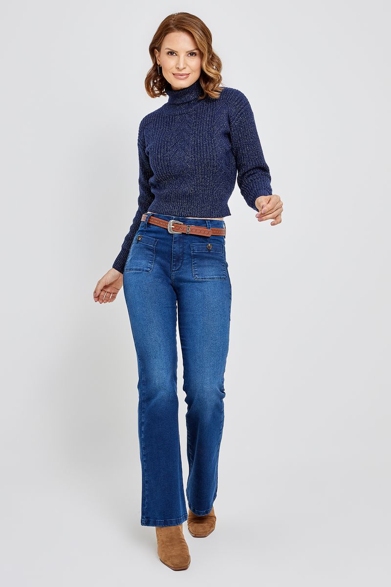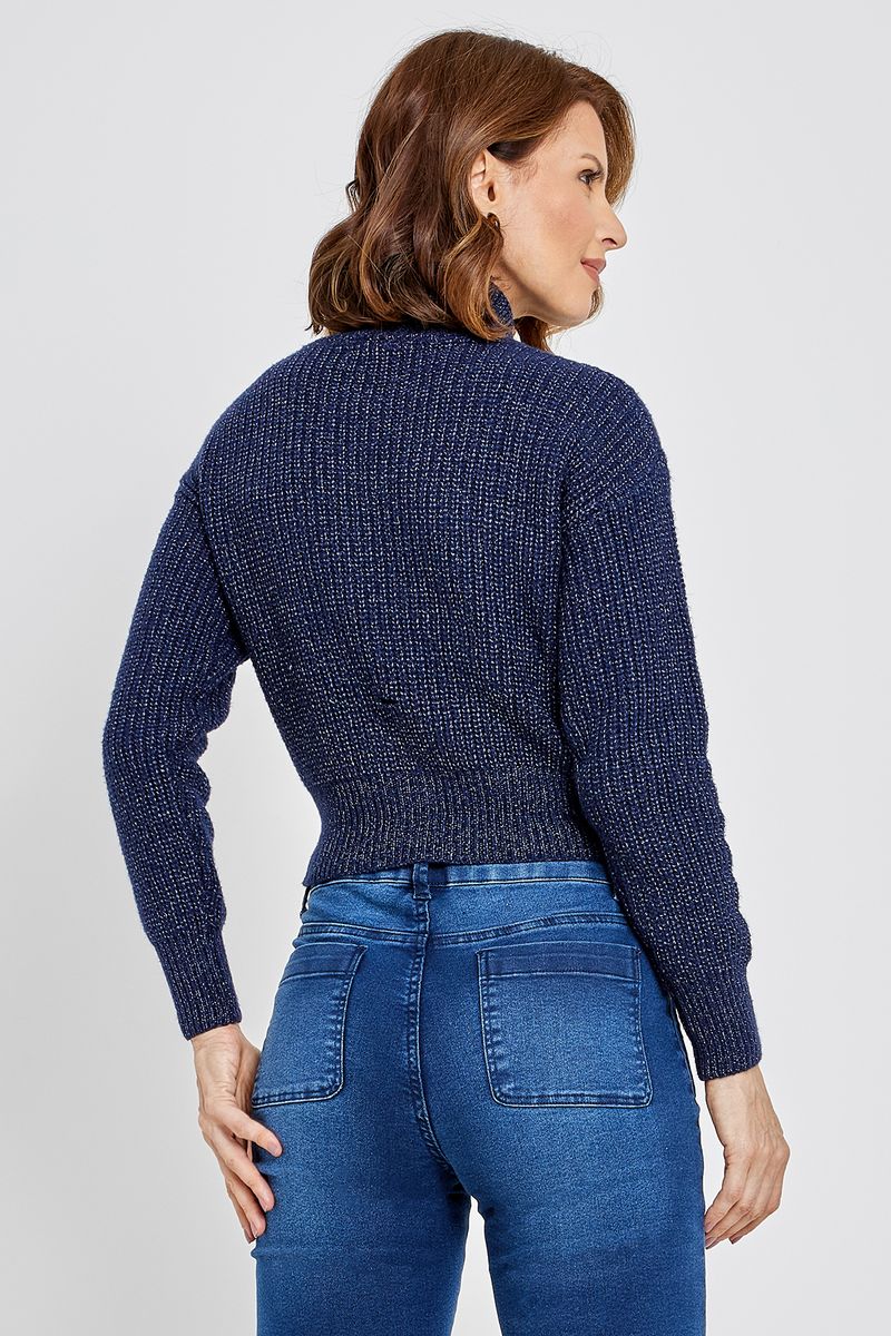 Com visual clássico e gola alta, esse suéter azul é perfeito para looks quentinhos e modernos.