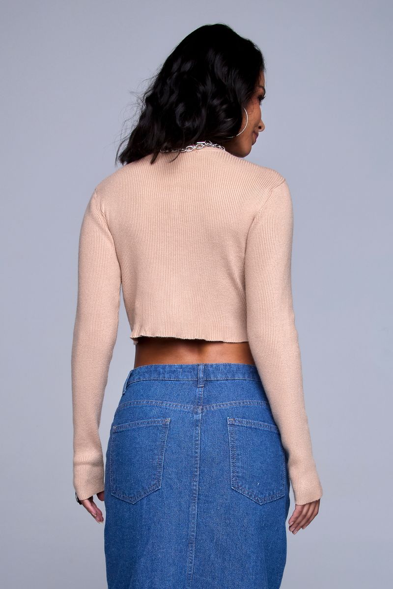 Suéter feminino marrom, perfeito para looks elegantes e confortáveis durante o inverno.