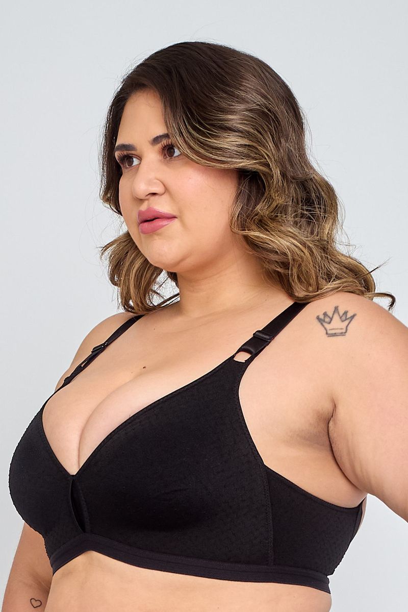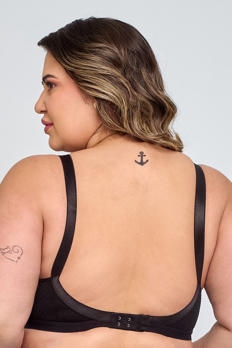 Sutiã Demillus modelo plus size. Cor preta. Charmoso e delicado.