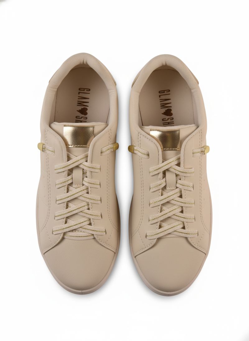 Eleve seu estilo com o Tênis Feminino Off White Caedu. Com cadarço brilhante e detalhes dourados, este tênis oferece conforto e um toque de glamour. Perfeito para quem busca um calçado versátil e moderno, ideal para o dia a dia com um toque de brilho.